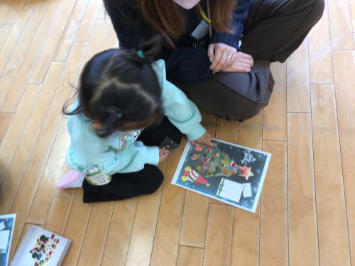 今日は来年度入園のお友達が慣らし保育にやってきました。クリスマス会をやったよ。クリスマスツリーをつくったよ。クリスマスシアターを見たよ。園庭であそんだよ。