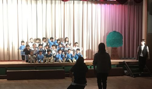 年長さん 藤組さんです。どんな劇になるのでしょう。ミュージカルかな?たのしみ~~~!