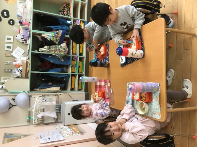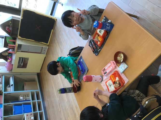 今年度4回目のおみそ汁会です。年少さんの様子です。食べてる時もかわいいです。