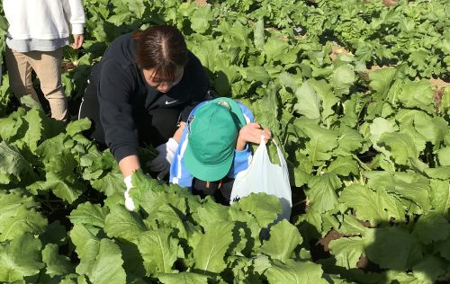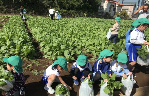 今日は年長さんがカブの収穫をしました。幼稚園のカブは生でも食べられるおいしいカブです。年中さんは後日やりますね。