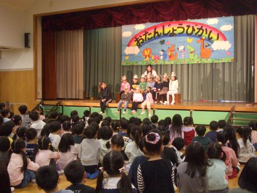 今日は幼稚園公開保育です。可愛い「いちご組」さんは、ミニお遊戯会をおこないました。