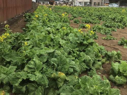 菜の花が大きくなってきました。昨日試食をしましたが、やわらかくておいしいです。もう少し大きくなったら、自由に畑に入ってとって下さい。もう少しお待ちを!