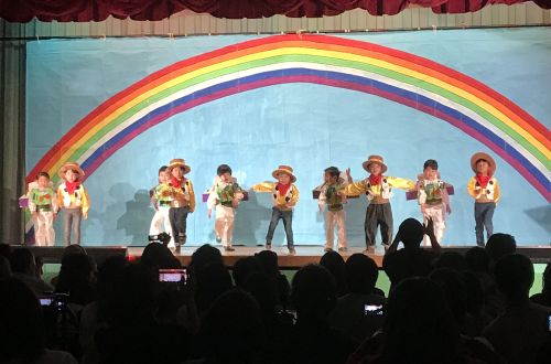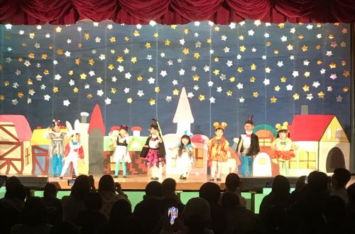 お遊戯会の予行が始まりました。みんなで見合って、また練習して、当日に備えます。