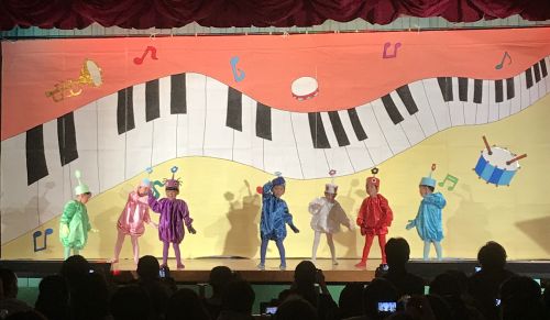 年長さん 藤組さんです。どんな劇になるのでしょう。ミュージカルかな?たのしみ~~~!